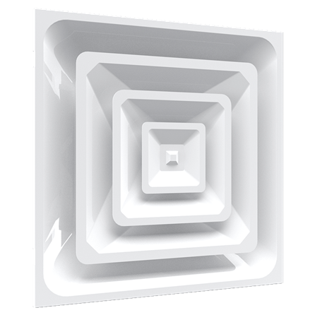 El difusor de 3 conos modelo DDC3 es una excelente opción para acondicionar espacios donde se requiera de un patrón de descarga horizontal en 360°, apto para aplicaciones de enfriamiento en sistemas de volumen variable. Con un diseño estético y funcional, el difusor de 3 conos DDC3 está fabricado en acero estampado y un sencillo ensamble sin soldaduras ofreciendo una apariencia limpia en el plafón reticular o corrido. El difusor DDC3 está disponible en módulos de 24"x24" y cuellos redondos en 6", 8", 10", 12" y 14"; su acabado es en pintura electrostática en colores de línea: blanco, blanco tablaroca o negro mate (colores especiales también disponibles). Como accesorios opcionales, se pueden solicitar el control de volumen tipo mariposa CVR y el marco de montaje MCE para colocación en plafón corrido.