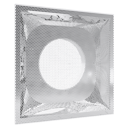 Los difusores perforados modelo PFV para inyección (PFVI) o retorno (PFVR) son una excelente opción para aplicaciones que requieran de calefacción, ventilación o enfriamiento. La serie PFV está conformada por un plenum de fibra de vidrio que cumple con las normas ASTM E84, ASTM C177-85 y UL 181 y una malla perforada en acero o aluminio. El modelo PFVI incluirá un deflector tipo placa de choque colocado en la malla, esta serie está disponible en un solo tamaño de 24"x24". Los diámetros de los cuellos están previamente marcados en el cuerpo del plenum para una fácil apertura al tamaño deseado permitiendo así la colocación de un cuello de lámina fabricado en campo. Los acabados de la malla son en pintura electrostática en colores de línea: blanco, blanco mate o negro mate. Como accesorios opcionales están el Control de Volumen Redondo (CVR) y el Marco de Montaje (MCE) para instalación en plafón corrido.