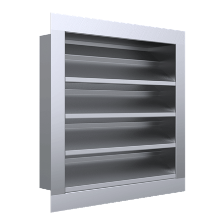 Diseñada para toma de aire exterior o extracción, la compuerta de hoja fija CHL es una excelente opción para cuartos de máquinas o fachadas. Su diseño tipo louver para empotrar, cuenta con una hoja superior formada y doblada hacia atrás que permite una mejor protección contra la lluvia. Está fabricada en lámina de acero galvanizado en calibre 16, o bajo solicitud, es posible fabricarla en aluminio.